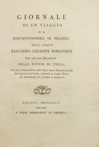 BOSCOVICH RUGGIERO GIUSEPPE, Giornale di un viaggio da Costantinopoli in Polonia [...] con una sua Relazione delle rovine di Troja, e in fine il Prospetto delle opere nuove matematiche del medesimo autore, contenute in cinque tomi... Bassano : a...