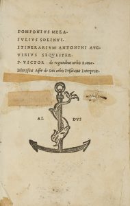 MELA POMPONIUS, Pomponius Mela. Iulius Solinus. Itinerarium Antonini Aug. Vibius Sequester. P. Victor de regionibus urbis Romae. Dionysius Afer de situ orbis Prisciano interprete. (Al colophon : ) Venetiis : in aedibus Aldi et ANDREAe soceri, mense...