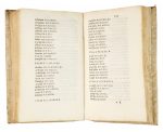 In-8° (mm 158x100). Carte 233, [3]. Ancòra aldina al frontespizio e in fine, spazi per capilettera con letterine-guida. Carta del frontespizio allentata e con due pecette applicate anticamente a cassare una nota di possesso, una terza pecetta rimossa ha provocato un foro, altra lacuna al margine, un esile lavoro di tarlo marginale alle prime dieci carte circa e a poche altre lungo il volume, ma nel complesso buona copia. Legatura muta seicentesca in piena pergamena rigida, con segni del tempo. Timbro di collezione Calleri al contropiatto anteriore.