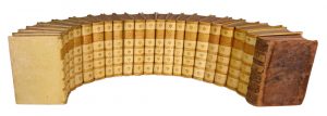 Alcune lievi bruniture e gore d'acqua sparse nei volumi e qualche strappo riparabile ad alcune tavole. Bella legatura omogenea in piena pergamena rigida coeva,(tranne al volume 22, che invece è in piena pelle con abrasioni.