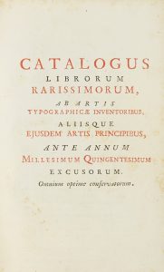 CATALOGUS LIBRORUM RARISSIMORUM, ab artis typographicae inventoribus, aliisque ejusdem artis principibus, ante annum millesimum quingentesimum excursorum. Omnium optime conservatorum.S.n.t. [ma Venezia : Pasquali, dopo il 1737].