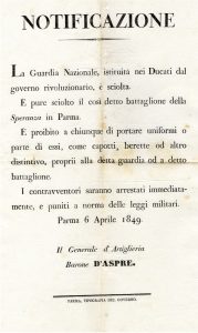 LOTTO COMPOSTO da 14 tra decreti, notifiche, disposizioni relativi alla città di Parma e lo Stato di Parma e Piacenza. Metà del XIX secolo.