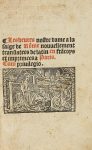 Copia scompleta di 13 carte, con il testo impresso in rosso e nero, un grazioso legno al frontespizio e una bella xilografie a piena pagina a carta i6v.