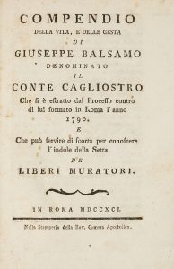 BARBERI GIOVANNI, Compendio della vita,e delle gesta di Giuseppe Balsamo denominato il conte Cagliostro… In Roma : nella Stamperia della Rev. Camera Apostolica, 1791.