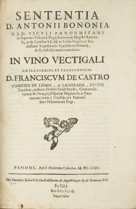 BOLOGNI ANTONIO, Sententia [...] in vino vectigali… Panomi : Apud Andream Colicchia, 1664.