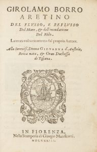 BORRO GIROLAMO, Del flusso, e reflusso del mare, e dell'inondatione del Nilo. In Fiorenza : nella Stamperia di Giorgio Marescotti, 1583.