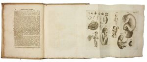 Molto interessante la tavola illustrante in 17 figure lo sviluppo del feto, basata sul lavoro dell'anatomista torinese Giovanni Battista Bianchi che per anni aveva raccolto embrioni e feti di diverse fasi di sviluppo per il suo 'museo degli aborti' e le sue pubblicazioni.