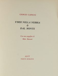 CAPRONI GIORGIO, Versi nella nebbia & dal Monte con una acquaforte di Mino Maccari. Trieste : Alut, 1968.