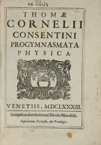 CORNELIO TOMMASO, Progymnasmata physica. Venetiis : sumptibus Bartholomaei Nicola Moreschi, 1683.
