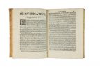 Strappetto al margine di p. 83-84 che interessa seppur minimamente il testo, qualche arrossatura sparsa. Legatura coeva in piena pergamena semifloscia con titoli manoscritti al dorso, mancante della carta di guardia anteriore. Note di possesso coperte con pecette cartacee al frontespizio.