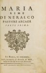 ERCOLANI GIUSEPPE MARIA, Maria. Rime di Neralco Pastore Arcade parte prima (-seconda). In Roma : Nella Stamperia di Antonio de' Rossi, 1739.