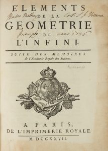 FONTENELLE BERNARD de, Élémens de la Géométrie de l'Infini. A Paris : de l' Imprimerie Royale, 1727.