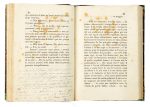 Legatura di inizio Novecento in mezza pelle con piatti marmorizzati. A p. 82 in bella grafia coeva, un lungo brano è stato tradotto in francese.