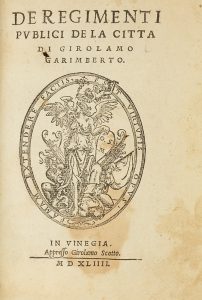 GARIMBERTO GIROLAMO, De regimenti publici de la città. In Vinegia : Appresso Girolamo Scotto, 1544.