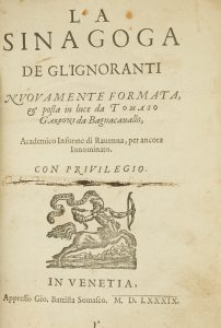 GARZONI TOMMASO, La sinagoga de gl'ignoranti nuovamente formata… In Venetia : appresso Gio. Battista Somasco, 1589.