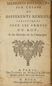 HELVETIUS JEAN-ADRIEN, Memoires instructifs sur l'usage de differents remedes… A Paris : chez Pierre Le Mercier, 1705.
