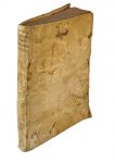 Legatura coeva in piena pergamena con risvolti, senza più legacci e con segni di inchiostro ai piatti.