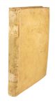 Legatura coeva in piena pergamena rigida con titoli impressi in oro su falso tassello al dorso e tagli dorati, rimontata anticamente.