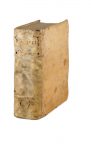 Legatura coeva in piena pergamena semifloscia con titoli manoscritti al dorso ormai svaniti, forellini di tarlo, macchie e due mancanze nella pergamena al piatto posteriore.