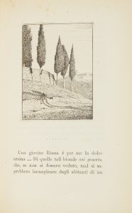 Con 18 belle acqueforti incise su veline e applicate alle pagine. Lievi arrossature sparse ma buona copia, allentata internamente. Brossura editoriale gialla, con dorso in parte lacunoso.
