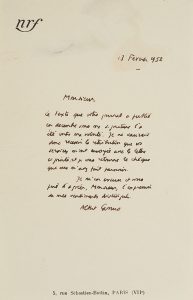 rédacteur en chef de l’hebdomadaire Arts, qui avait publié son article L’Artiste en prison sans son autorisation « ... Je ne saurais donc recevoir la rétribution que vos services m’ont envoyée. et je vous retourne le chèque que vous m’avez fait parvenir. ». Joint, le texte de l’article de l’hebdomadaire.