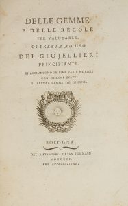 NALDI PIO, Delle gemme e delle regole per valutarle. Bologna : dalla stamperia di San Tommaso, 1791.