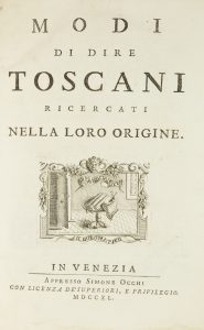 PAOLI SEBASTIANO, Modi di dire toscani ricercati nella loro origine. In Venezia : appresso Simone Occhi, 1740.