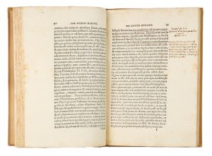 Buona copia in cartonato moderno con titoli impressi in nero al dorso ; molte postille di mano coeva al testo.