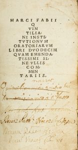 Prima del Quintiliano, il dodicesimo era stato impiegato nel 1511 per il Petrarca e Cicerone.