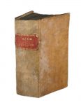 Spazi per capilettera con letterine-guida, marca dello stampatore in fine. Esemplare lievemente rifilato e con l'inchiostro di coloritura dei tagli visibile in parte anche sui margini delle carte, con strappetti marginali e una lacuna a carta CXLIIII con perdita di poche lettere. Legatura settecentesca in piena pergamena rigida, un po' sformata al piatto anteriore e con titoli impressi in oro su tassello al dorso. Tagli blu. Alcune note di mano coeva al testo in principio.