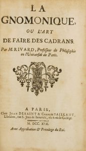 RIVARD DOMINIQUE-FRANÇOIS, La gnomonique, ou L'art de faire des cadrans. A Paris : Chez Jean Desaint & Charles Saillant, 1742.