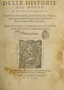 TARCAGNOTA GIOVANNI, Delle historie del mondo [...] dal principio del mondo fino à tempi nostri è successo, cavate da' piu degni, e piu gravi auttori [...] parte prima (-seconda). In Venetia : per Michele Tramezzino, 1562.