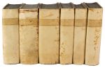 Legatura omogenea in pergamena rigida settecentesca con titoli e fregi d'oro al dorso e tagli blu. (6)