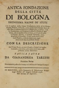 TARUFFI GIOVANNI ANDREA, Antica fondazione della città di Bologna… In Bologna : nella stamperia di Bartolomeo Borghi, 1738.