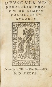THOMAS A KEMPIS, Opuscola venerabilis [...] canonici regularis. Venetiis : in Officina Divi Bernardini, 1536.