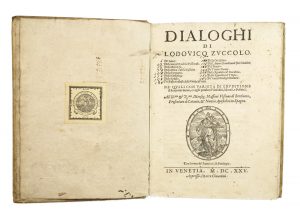 ZUCCOLO LODOVICO, Dialoghi De' Saluti. Della eminenza della Pastorale. Della Bellezza [...] Ne' quali con varietà di eruditione si scoprono nuovi, e vaghi pensieri filosofici, morali, e politici… In Venetia : Appresso Marco Ginammi, 1625.