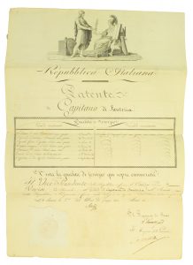 RACCOLTA DI oltre 40 documenti militari. Brevetti, lettere di avviso, decreti, stati di servizio, lettere in favore di PIETRO Varesi. Datati 1803-1850