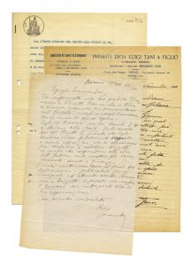 • Lettera relativa ai figurini per l'opera Iris, su incarico del Sig. Caramba, per per Teatro alla Scala. A firma di Armando Tani (Premiata ditta Luigi Tani & Figlio - Attrezzisti teatrali). Datata 14 novembre 1923.