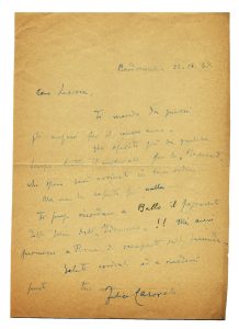 CASORATI FELICE, Lettera autografa firmata inviata al M° Mario Labroca, Teatro alla Scala. Datata 31 dicembre 1947, Bardonecchia.