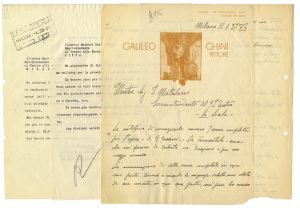 • I DOCUMENTO : Chini informa della consegna di 7 scene complete per l'opera di G. Rossini "Cenerentola". "La numerazione di dette scene complete in ogni sua parte tecnica e secondo le esigenze volute, sono state da me curate in ogni sua parte, così pure ho messo tutto il mio impegno (se del tutto riuscito non so, perché l'assoluto non esiste) a dare il carattere necessario alla intonazione che l'opera musicalmente a (sic)! fiducioso che Ella e la Direzione benignamente voglino (sic) apprezzare lo spirito da me posto in tali considerazioni [...].