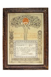 D'ANNUNZIO GABRIELE, Diploma 'Reggenza Italiana / del Carnaro / Comando dell'Esercito Liberatore'. Con firma autografa di Gabriele D'Annunzio. Datato 1919-1920.
