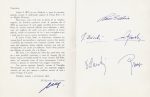 • Biglietto di auguri del "Centro Studi di Storia Contemporanea Roma". Con le firme riprodotte di Licio Gelli, Lino Salvinie ecc. Busta conservata. Datato 1973-1974. (3)