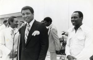 Cassius Clay è ritratto con altri personaggi, uno è il velocista Houston McTear.