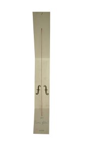 La creazione ricorda uno strumento ad arco : sono presenti infatti, in carta dorata, le "ff" - i fori di risonanza presenti sulla tavola armonica degli strumenti ad arco - e un filo rosso a rappresentare la corda dello strumento.