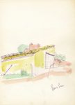 I disegni originali (tutti firmati) sono realizzati a penna nera, a penna rossa e a matita grigia. Alcuni sono acquarellati. Si tratta di studi di interni (e 1 di esterno). 1 disegno, su carta differente, rappresenta probabilmente un "caruggio" di Genova. La fotografia del giovanissimo Renzo Piano, con firma autografa, è incollata alla cartella universitaria. Carte molto ben conservate. Dimensioni dei disegni : 340x240 mm circa. (11)