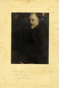 • Dedica autografa allo scrittore e direttore della rivista "La Fiera Letteraria" : "A Umberto Fracchia / il suo amico / Luigi Pirandello". Sulla fotografia (al margine inferiore destro) e sul supporto il timbro a secco del fotografo : "Crimella - Castagneri - Zani / Corso Garibaldi 2 - Milano".
