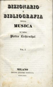 LICHTENTHAL PETER, Dizionario e Bibliografia della Musica. Milano, presso Antonio Fontana 1836.