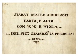 PERGOLESI GIOVANNI BATTISTA, Stabat Mater a Due Voci / Canto, e Alto / con V. V. e Viola / del Sig.r Giambatta Pergolesi / 1772.