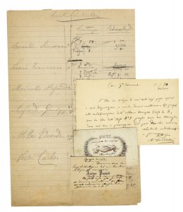 PONCHIELLI AMILCARE, 1 lettera autografa firmata, 2 biglietti da visita con annotazioni autografe e 1 un foglio di appunti autografo con annotazioni relative ai suoi allievi. Non datati