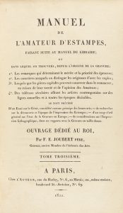 1821. LIBRO : (ARTE). JOUBERT, F. E. : MANUEL DE L´ AMATEUR D´ ESTAMPES. FAISANT SUITE AU MANUEL DU LIBRAIRE... París : Imp. L´auteur, 1821. 3 vol. en 8º menor.